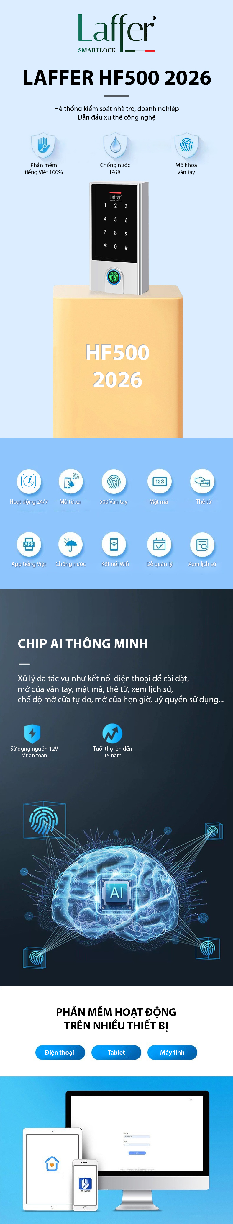 Chúng tôi mời bạn khám phá khóa vân tay Laffer HF500 – sự kết hợp hoàn hảo giữa bảo mật và tiện nghi dành riêng cho nhà trọ. Liên hệ với chúng tôi ngay hôm nay để sở hữu sản phẩm và trải nghiệm sự hoàn hảo trong từng chi tiết. Hãy để Laffer HF500 không chỉ bảo vệ ngôi nhà trọ của bạn mà còn nâng tầm sự an toàn và quản lý hiệu quả.